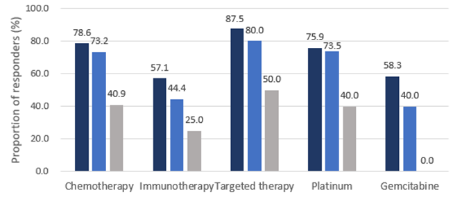 罗普司亭N01的安全性良好。在Part A中,各组治疗相关不良事件(TRAEs)发生率均在20%左右,主要为轻度的恶心、呕吐、肝功能指标轻微升高,未出现治疗相关的严重不良事件、出血或死亡。在Part B中,罗普司亭N01组的TRAEs发生率为41.5%,低于安慰剂组的54.5%。常见不良事件为轻度的恶心、呕吐和肝酶升高,均可控可逆。将Part A和Part B的数据进行汇总分析,罗普司亭N01组的总体应答率为73.3%(55/75),显著高于安慰剂组的40.9%(9/22),应答率差异为32.4%(95%置信区间:9.2%~52.9%),P<0.05。亚组分析显示,无论患者接受何种抗肿瘤治疗(化疗、靶向治疗、免疫治疗),罗普司亭N01均能显著提高应答率,预防和治疗CTIT(图4)。不同肿瘤类型的患者(实体瘤、淋巴瘤)也均受益于罗普司亭N01的治疗。图4 亚组分析,不同治疗方案