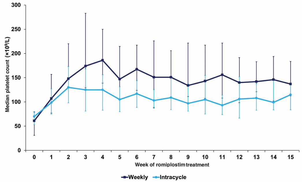 这些结果提示,规律性每周给药更有助于维持血小板稳定和保障患者抗肿瘤治疗的连续性。安全性方面,两种模式总体安全性相似。