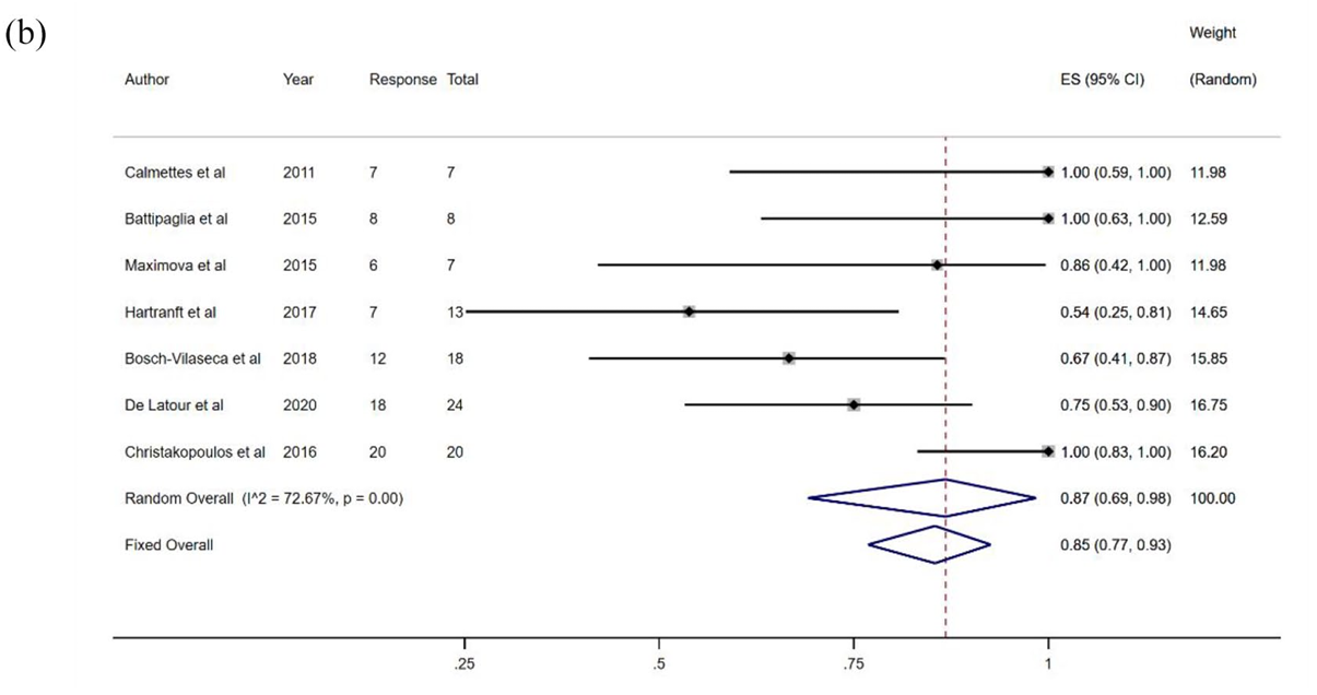 图4. 移植后血小板减少症患者接受罗普司亭治疗的反应率-森林图