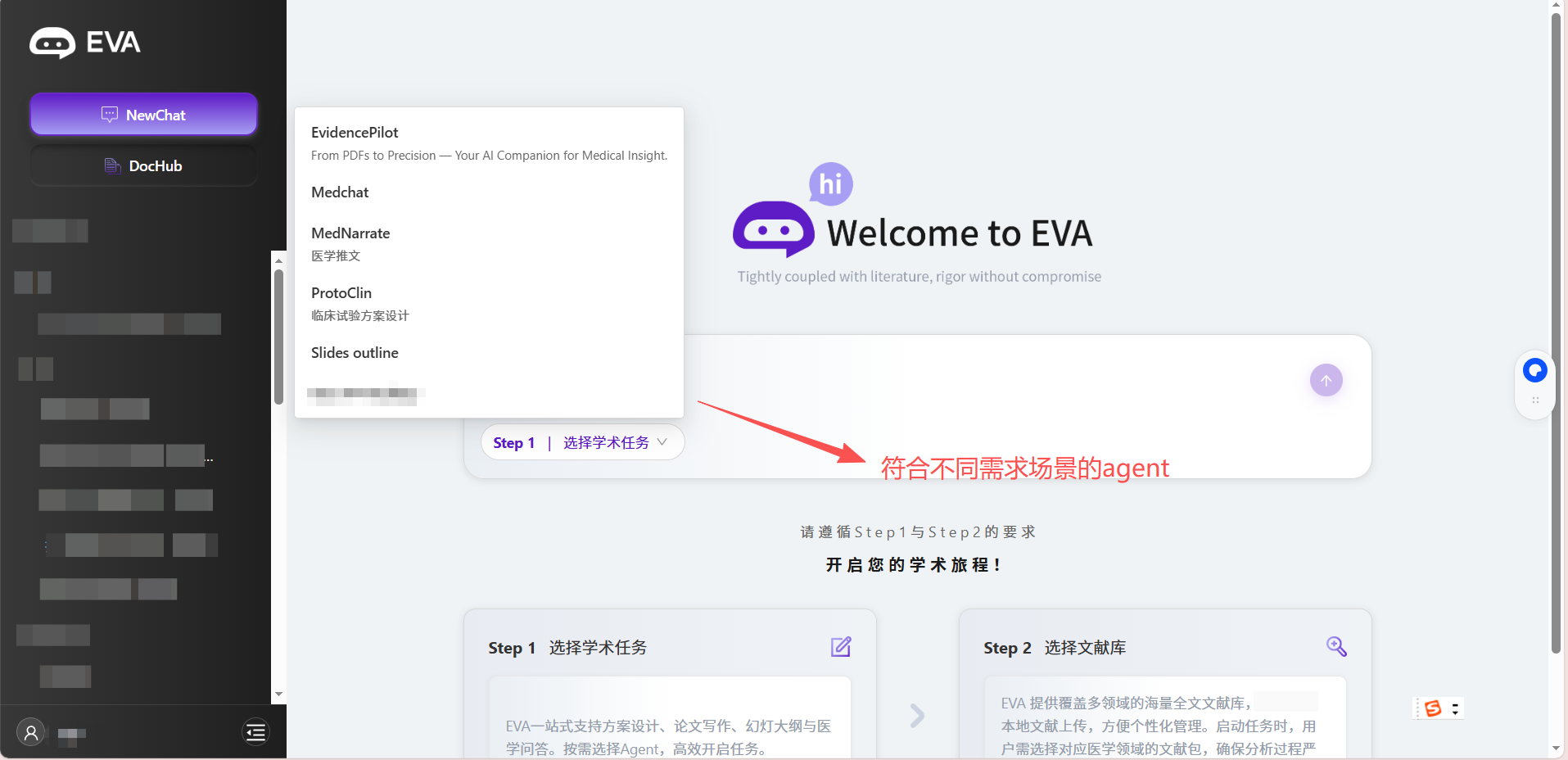 医学科研的核心是创新思路,但合格的研究方案是思路落地的前提。传统方案撰写模式下,科研者往往被框架搭建、合规校验、技术难题等琐事消耗精力,延误研究推进。而EVA这款顺手的智能工具,以医学专属的方案生成、智能校验、统计适配、协同协作功能,帮科研者避开弯路,快速将研究思路转化为符合规范、逻辑严谨、技术可行的合格方案。
