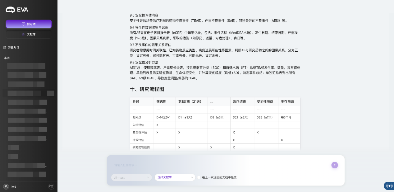 EVA内置千万级权威期刊文献库,涵盖细分疾病的临床研究、Meta分析、专家共识,且每周定向更新,确保捕捉前沿进展。它支持“主题式检索”,只需输入研究方向(如“TPO-RA治疗儿童ITP”),就能自动关联相关文献、指南、临床试验数据。更关键的是,EVA支持上传内部资料(如科室诊疗规范、未公开数据),形成“公私融合”的知识网络,既覆盖公域权威资源,又贴合团队实际需求。比如设计再生障碍性贫血的治疗研究方案时,EVA不仅能检索到最新诊疗指南,还能关联相关药物的最新III期临床试验数据、不同剂量方案的对比研究,确保信息覆盖无死角。