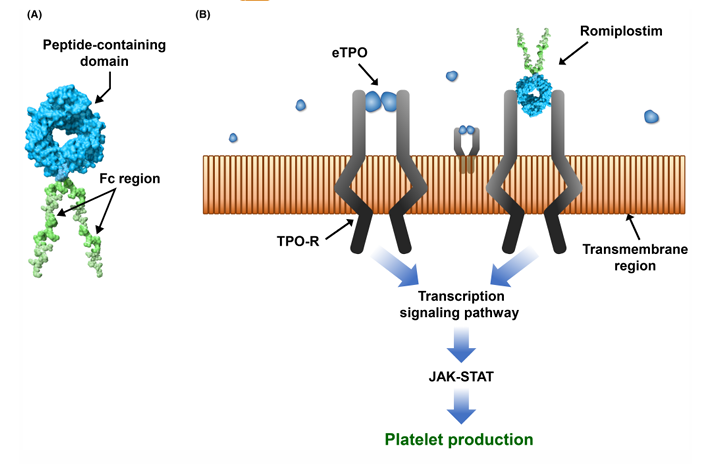 长效TPO-RA(如罗普司亭)成优选,核心原因有三:其一,作用机制具“双重调控”优势。既能激活巨核细胞表面TPO受体,经JAK-STAT通路促巨核细胞增殖分化;还可调节骨髓免疫微环境,减少血小板相关自身抗体,从“生成-清除”双环节改善病情,适配合并免疫异常的患者1,3。