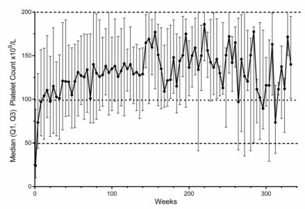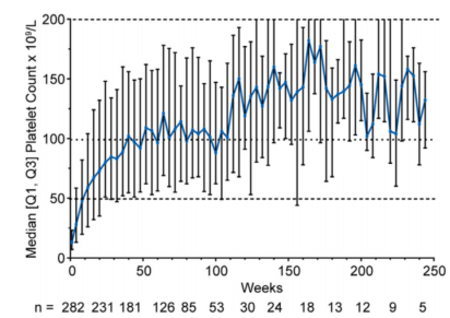 图2:接受罗普司亭治疗后的血小板计数变化情况