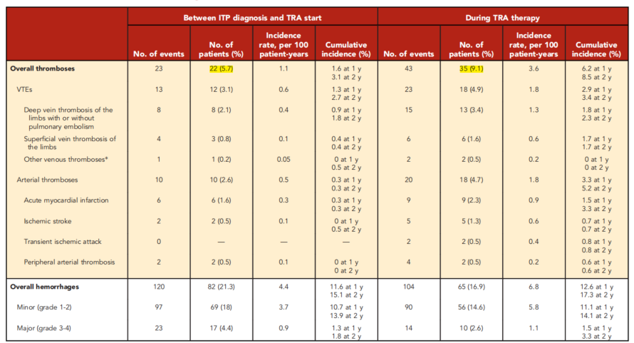 表1:接受TPO-RA治疗的血栓和出血事件发生率