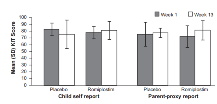 从生活质量影响来看,一项试点研究采用儿童ITP评估工具(KIT),对罗普司亭治疗下患儿及其家长的健康相关生活质量进行评估,结果显示,与安慰剂相比,罗普司亭并未对儿童日常活动、情绪及社会功能产生负面影响;反而随着血小板控制的改善,患儿自评及家长代理评分均呈上升趋势,家长负担量表评分也显著下降12。