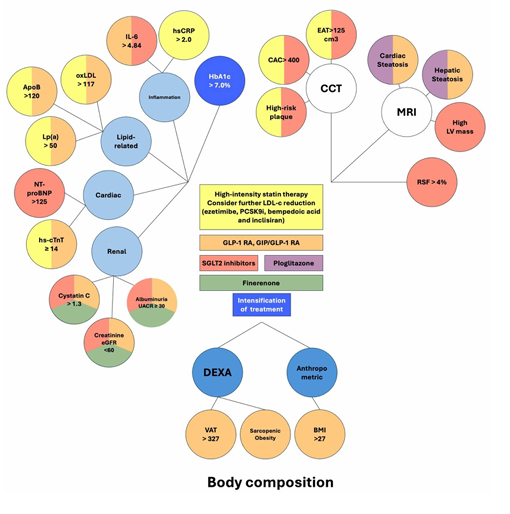 收藏专家2型糖尿病(T2DM)已成为全球公共卫生难题,影响超5.29亿成人,其患者心血管疾病风险较普通人高2-4倍,心血管疾病更是T2DM患者的首要致死原因。传统治疗多聚焦血糖控制(如HbA1c),但大量临床数据显示,仅靠降糖无法完全降低心肾并发症风险,且传统风险评估工具难以捕捉患者个体差异。