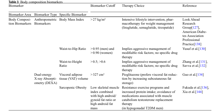 本文总结的生物标志物驱动治疗框架,打破了T2DM“唯血糖论”的传统观念,强调“心肾保护”需基于个体标志物特征。但临床应用中仍有挑战:一是部分标志物检测成本较高(如MRI-PDFF、DEXA),基层医院普及困难;二是缺乏针对不同种族人群的标志物临界值,例如亚洲人群的内脏脂肪风险阈值可能低于欧美人群。