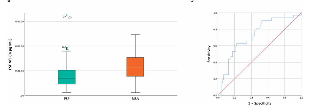 尽管NfL潜力显著,但当前证据显示,它距离临床普及仍有三道“坎”。第一道坎是“亚型区分难”。巴塞罗那队列的最新分析给出了明确数据:32例MSA患者的CSFNfL中位数(3019.42pg/mL)虽高于103例PSP患者(2177.20pg/mL),但ROC曲线AUC仅0.72,设定2816.00pg/mL为阈值时,灵敏度仅53%;更关键的是,年龄校正后,两组NfL差异无统计学意义(p=0.064)。这意味着,仅靠NfL,医生无法精准判断患者是MSA还是PSP,而这两种疾病的临床管理又存在差异,可能影响治疗决策。