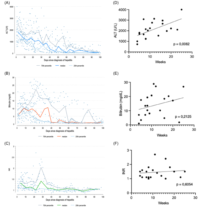 与传统认知中“HAAA预后极差”的印象不同,该研究显示儿童HAAA的肝功能恢复情况较为乐观:排除2例接受肝移植的患者后,其余20例患者的肝功能均完全恢复,中位恢复时间为8.5周(4-25周)。即使是发展为ALF的患者(18%),其肝功能损伤也并非不可逆,仅部分需要紧急肝移植(9%)。但需要注意的是,HAAA的核心风险并非肝脏损伤本身,而是后续的BMF进展——大多数患者(73%)最终需要接受造血干细胞移植(HSCT)治疗BMF,总体生存率为95%,仅1例患者死于HSCT后败血症。这一结果提示,临床治疗的重点应放在“肝炎恢复后警惕BMF发生”上,而非过度关注肝脏损伤的不可逆性。
