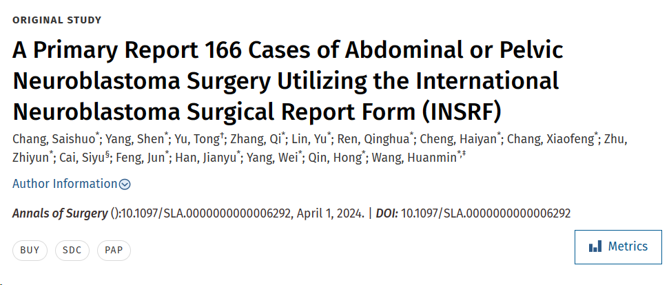 【文献精读】王焕民教授团队首次公布166例腹部或盆腔神经母细胞瘤手术使用国际神经母细胞瘤手术报告表的研究结果